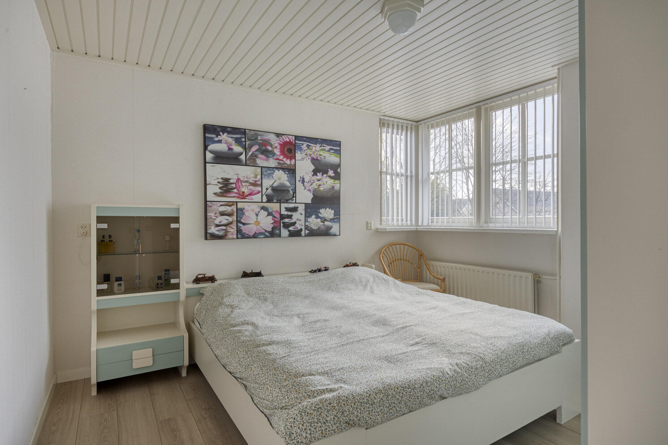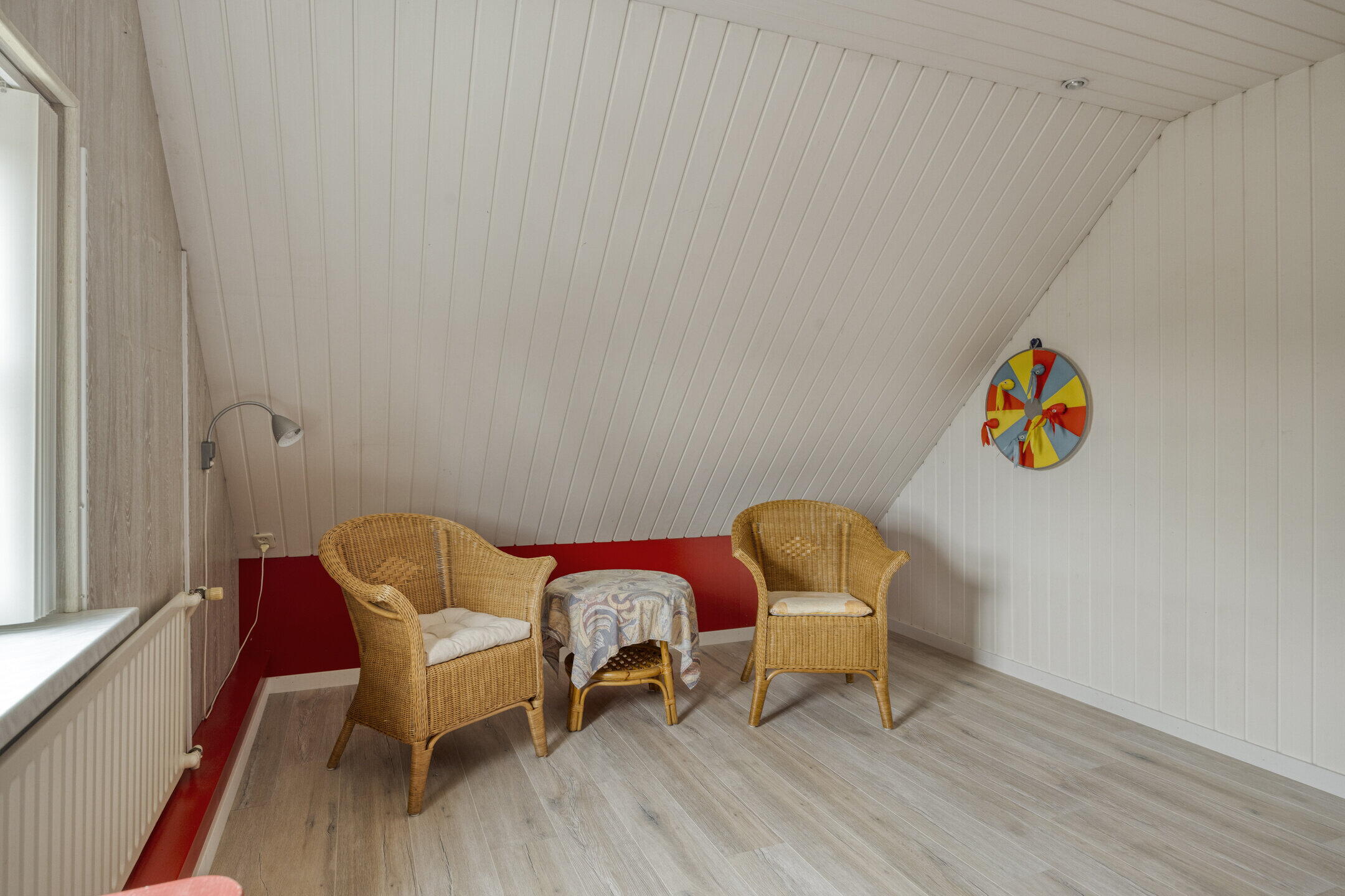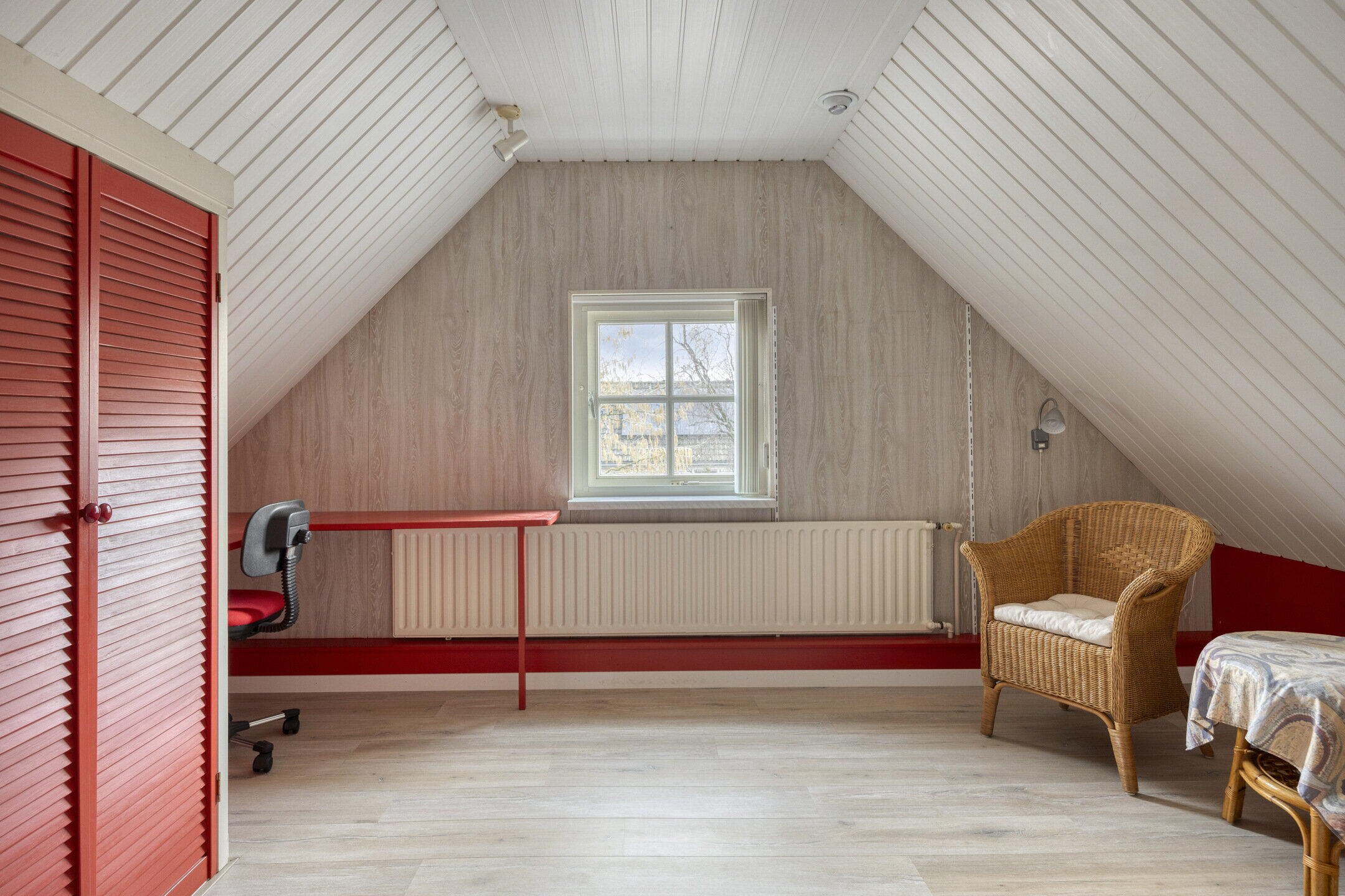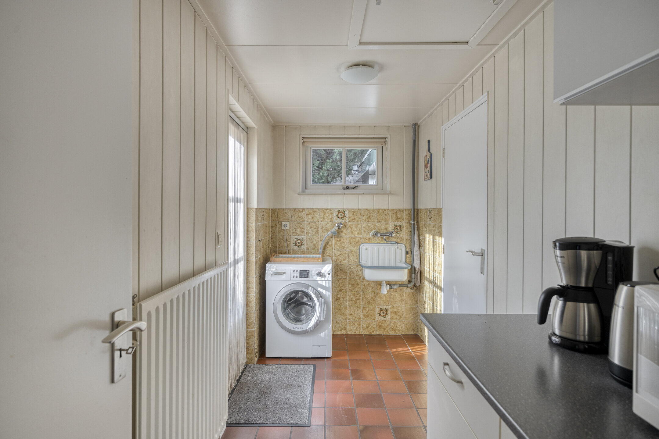 De keuken is ruim opgezet met een kookeiland en biedt volop plek voor een grote eethoek en extra kastruimte. Aansluitend vind je de praktische bijkeuken met witgoedaansluitingen, een deur naar de tuin én toegang tot de garage. Ideaal voor extra koel- of vriesruimte. Daarnaast is hier via een vlizotrap de vliering boven de schuur bereikbaar, waar ook de cv-opstelling zich bevindt.