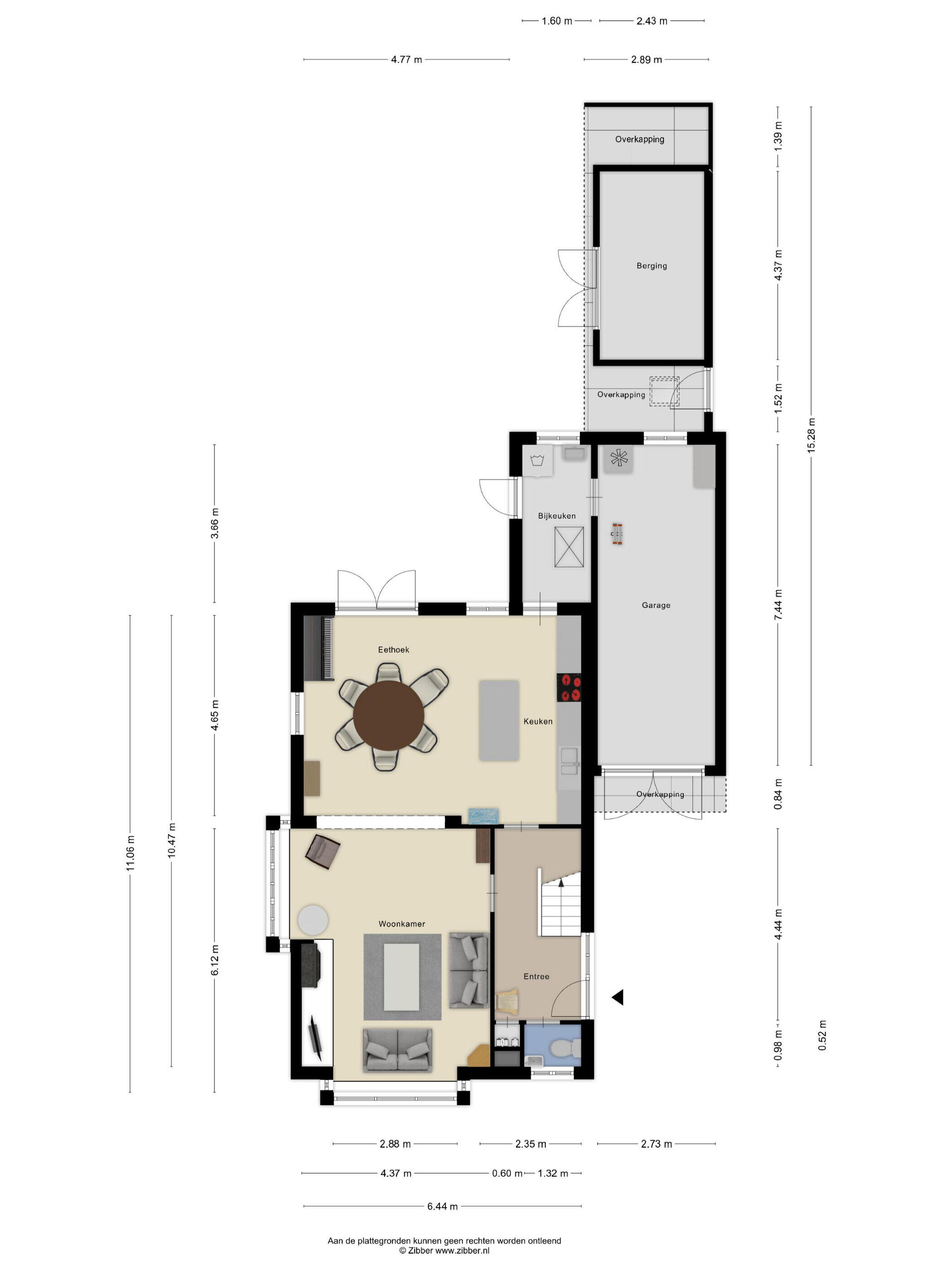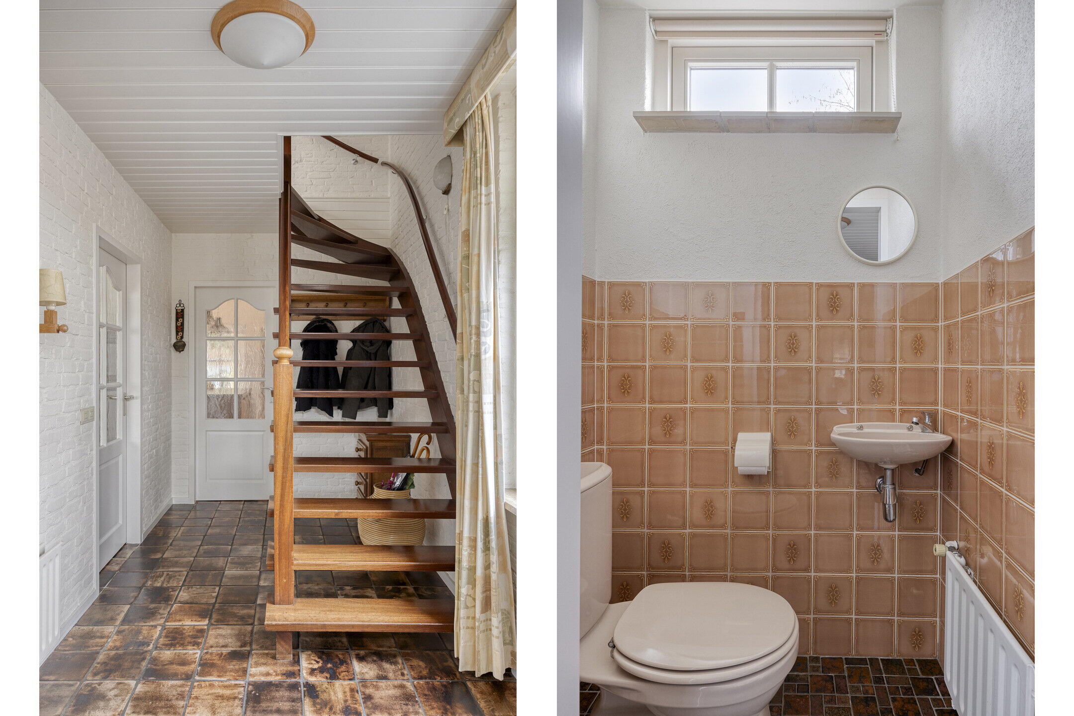 Je parkeert comfortabel op je eigen oprit en loopt via de zijkant de woning binnen. In de entree vind je de trapopgang naar boven, toegang tot het toilet, de woonkamer én de leefkeuken. De bruine tegelvloer, die is doorgelegd over de gehele benedenverdieping, geeft een solide basis en benadrukt de robuuste uitstraling van de woning.