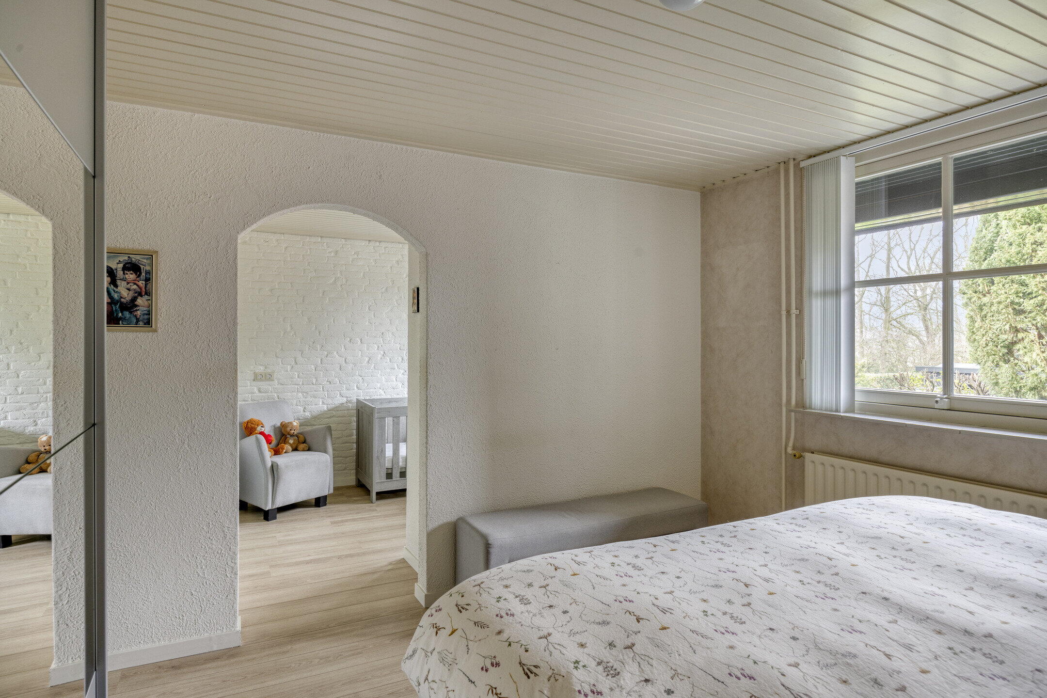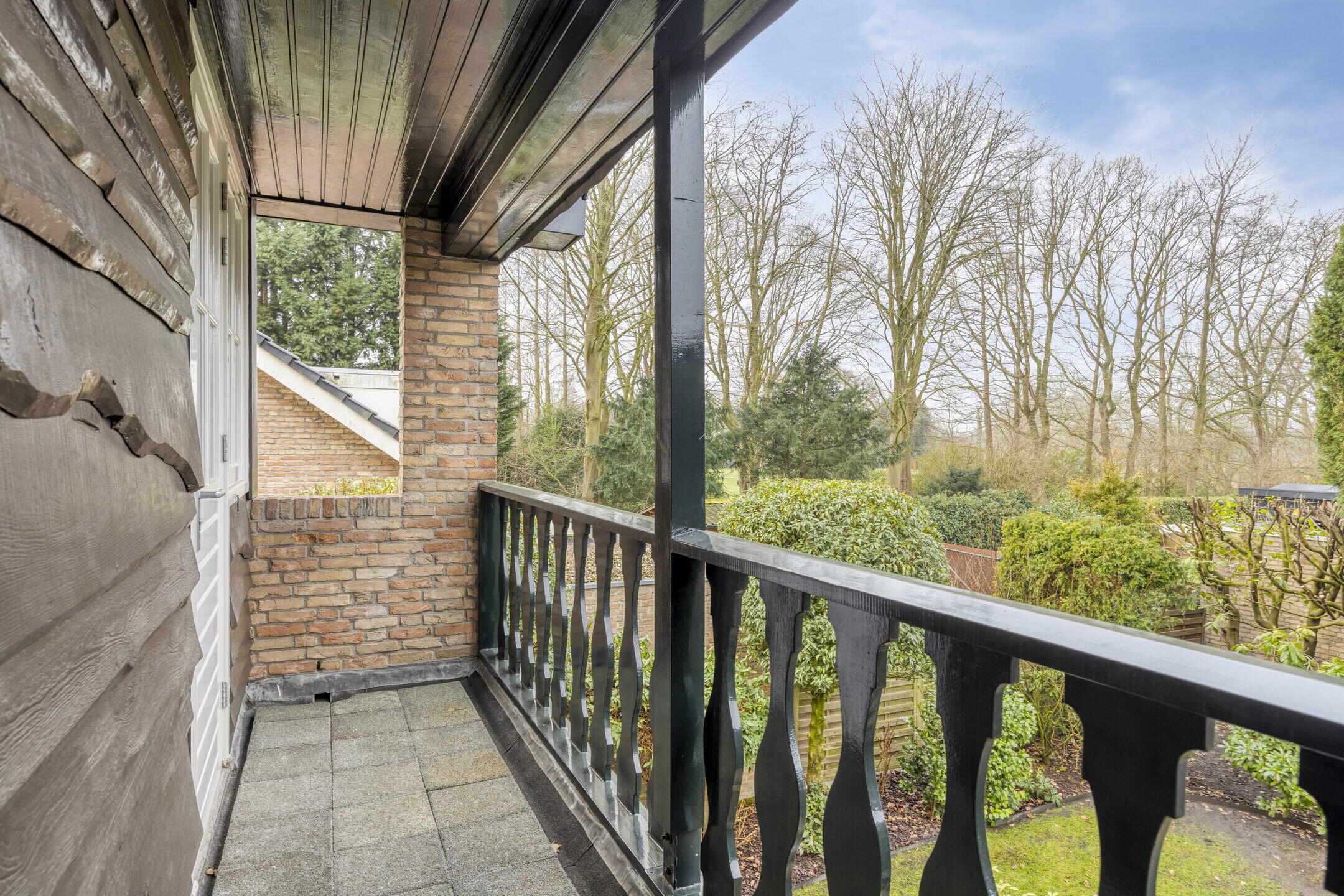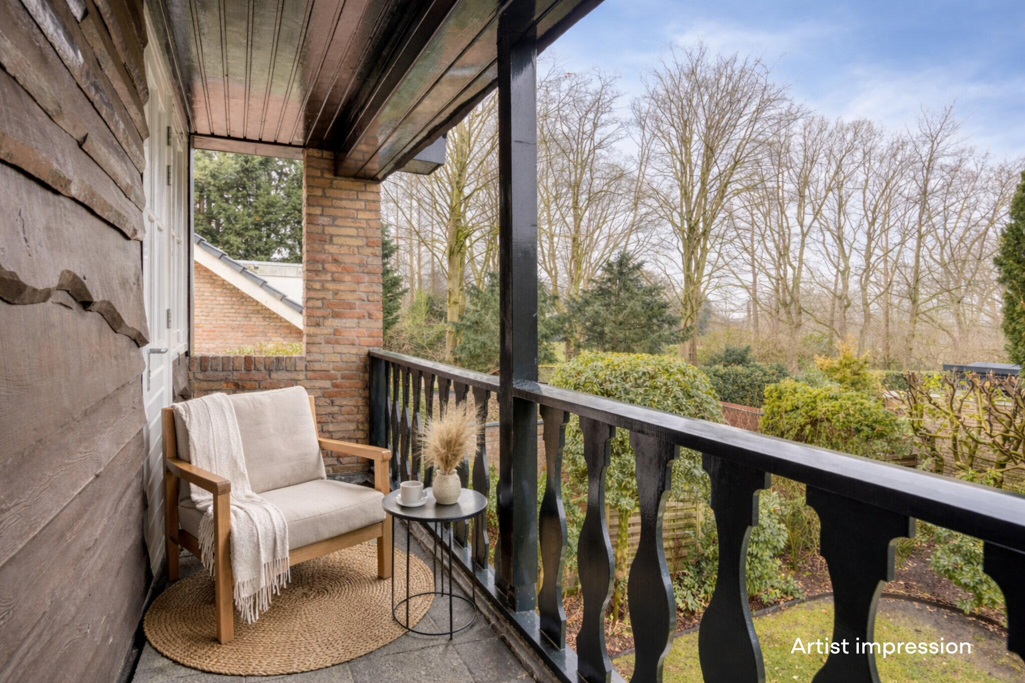 Op de eerste verdieping geeft de overloop toegang tot drie slaapkamers. De grootste slaapkamer aan de achterzijde staat in verbinding met een vierde kamer, perfect als walk-in closet, babykamer of thuiskantoor. Vanuit beide kamers heb je toegang tot het balkon.
