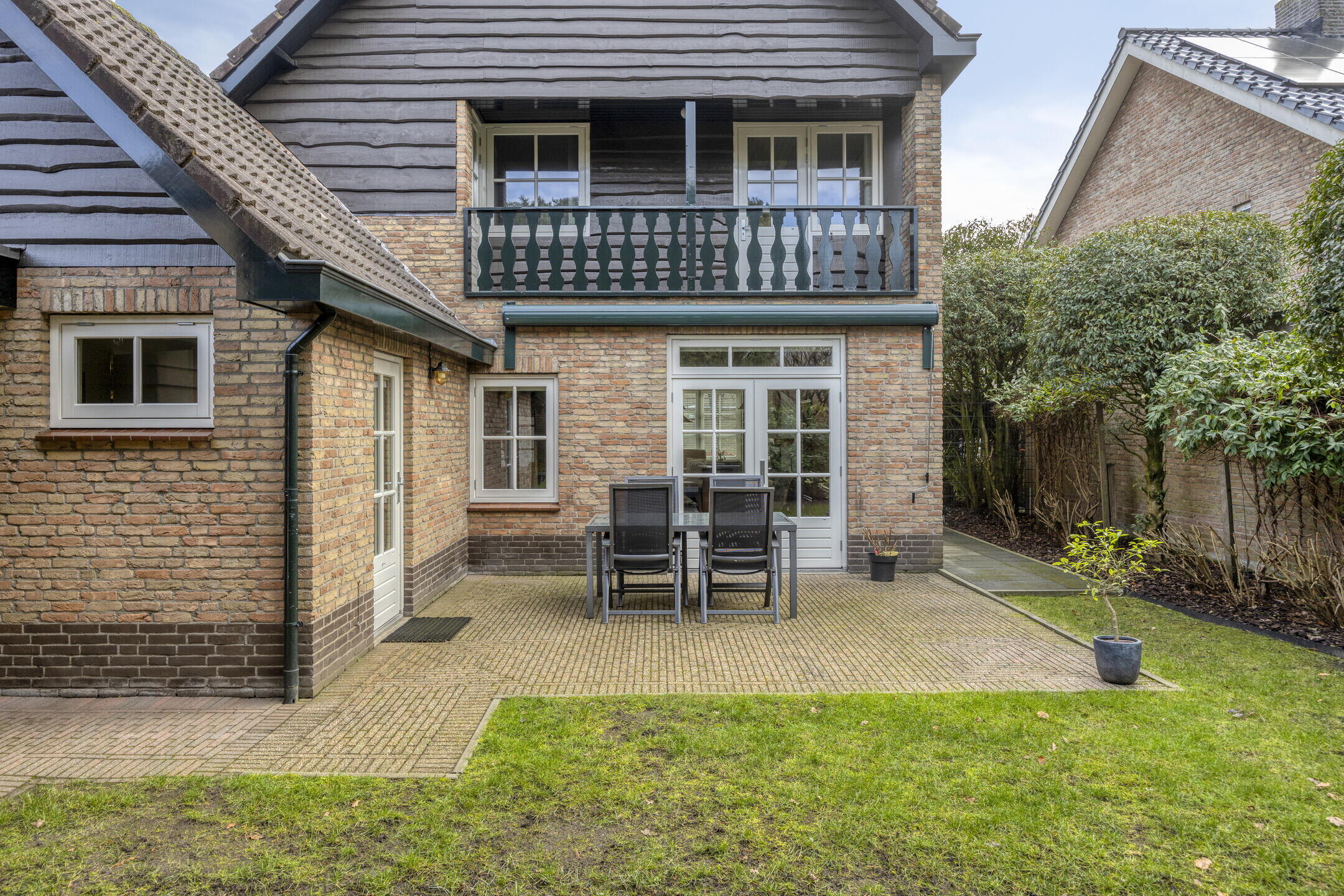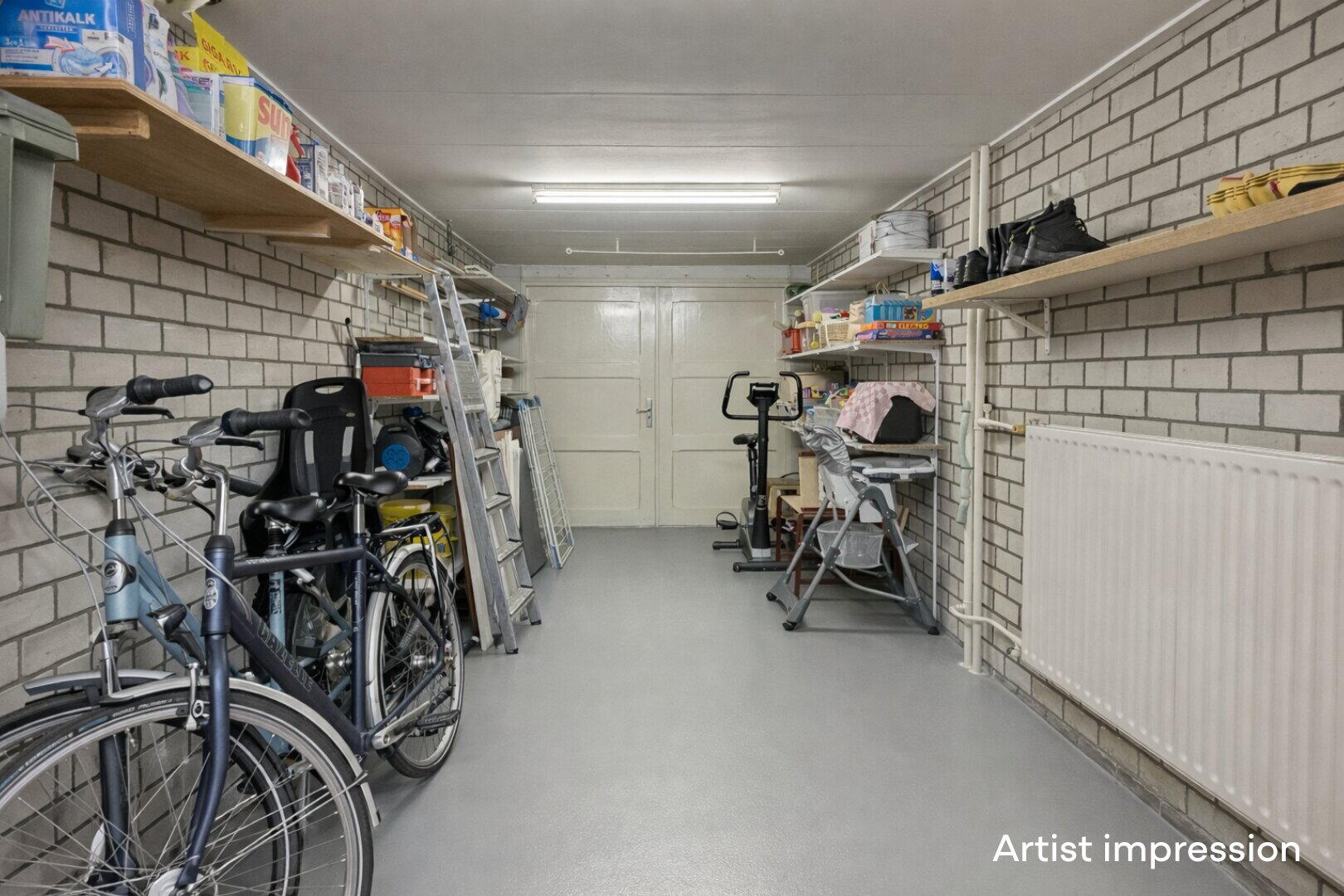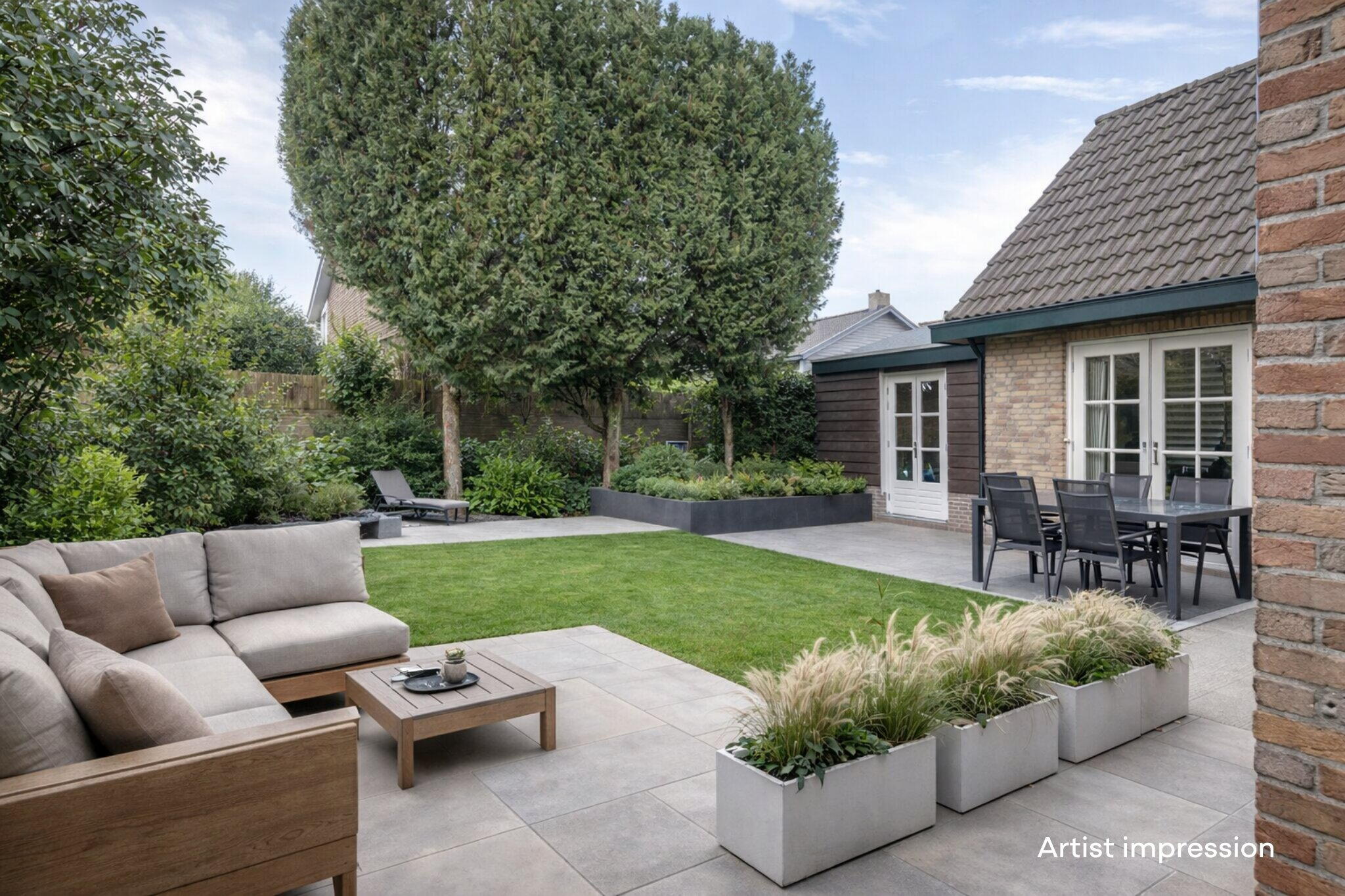 De groene tuin biedt veel privacy dankzij de aanwezige bomen. Een fijne plek om in alle rust te ontspannen. Met een extra berging voor tuingereedschap en poorten aan beide zijkanten van de woning is de tuin ook praktisch ingericht. Hier geniet je van vrijheid, ruimte en een fijne buitenbeleving.