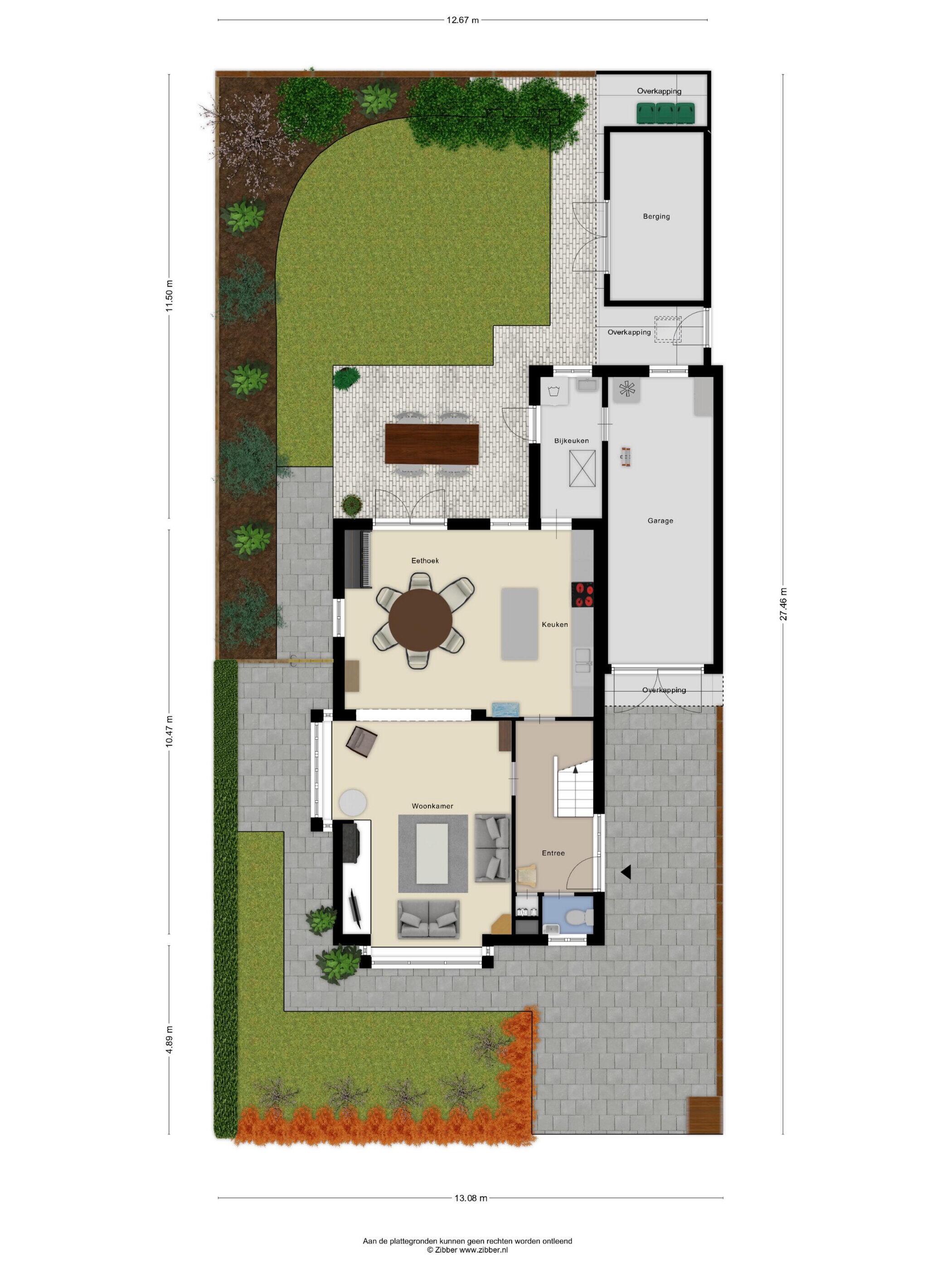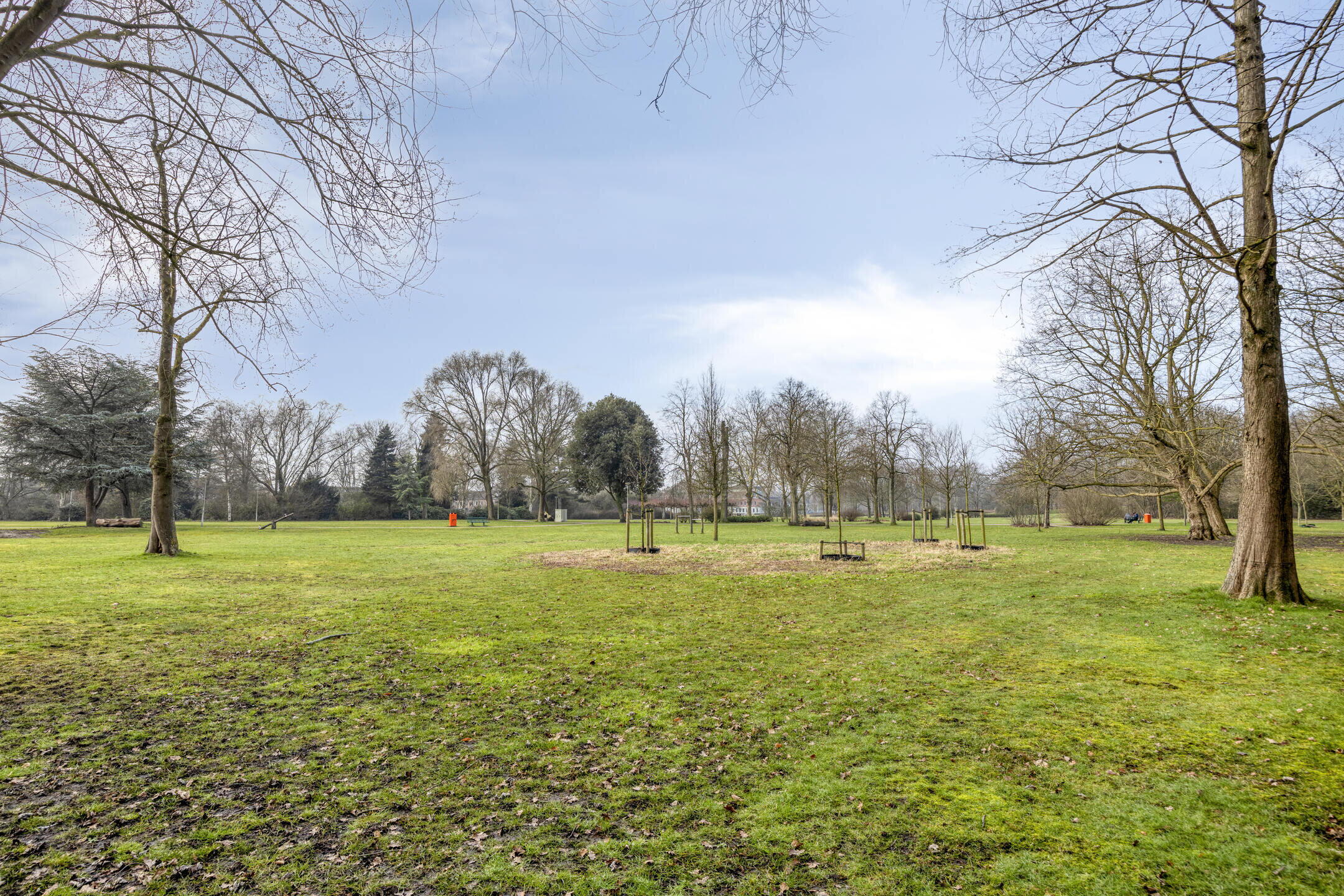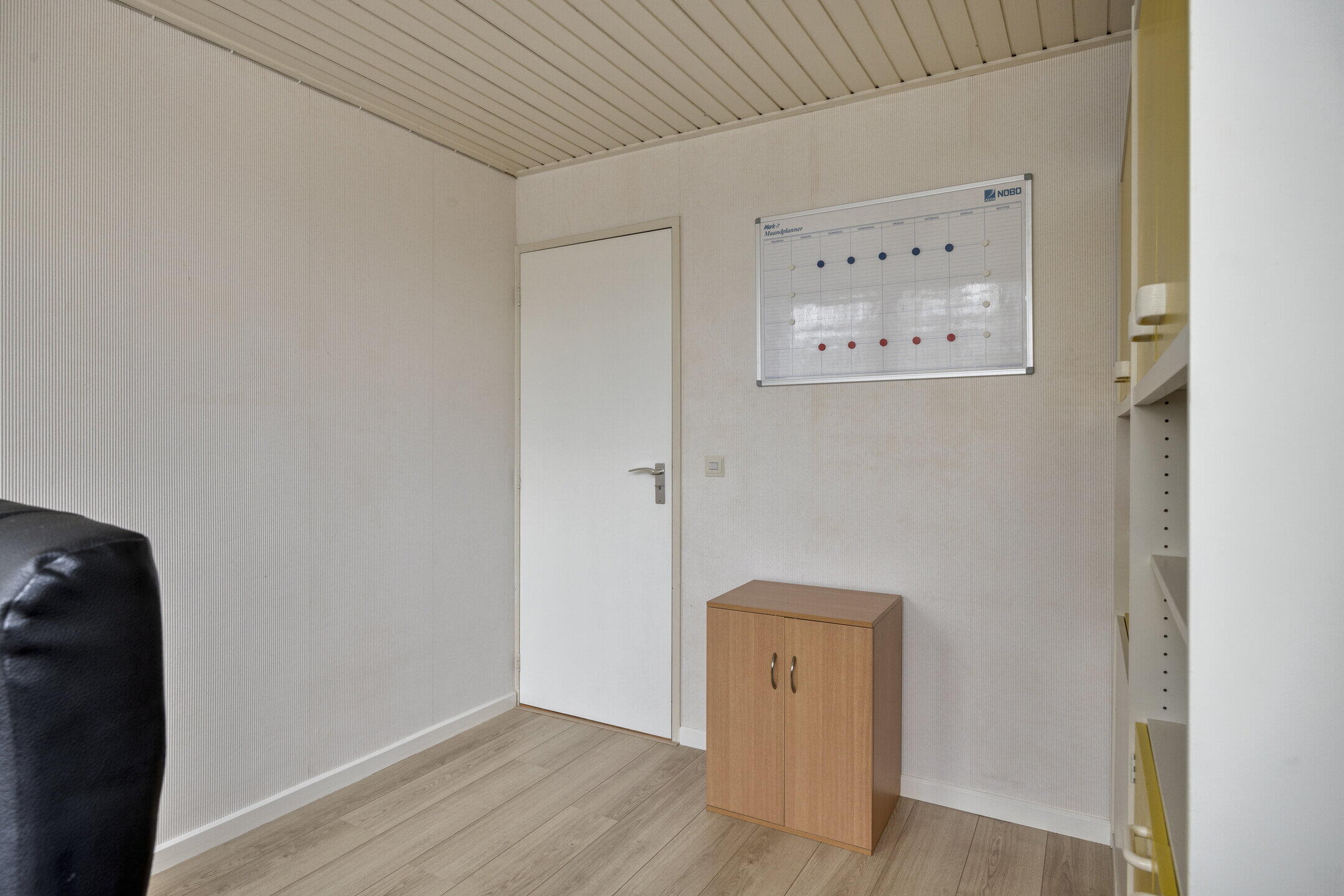 De groene tuin biedt veel privacy dankzij de aanwezige bomen. Een fijne plek om in alle rust te ontspannen. Met een extra berging voor tuingereedschap en poorten aan beide zijkanten van de woning is de tuin ook praktisch ingericht. Hier geniet je van vrijheid, ruimte en een fijne buitenbeleving.